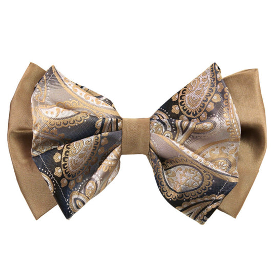Paisley Taupe Big Bow Tie and Matching Handkerchief 4164
