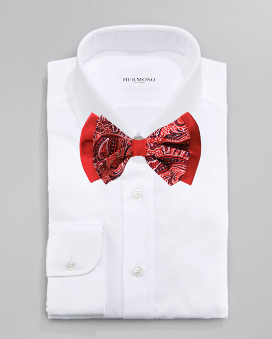 Paisley Red Big Bow Tie and Matching Handkerchief