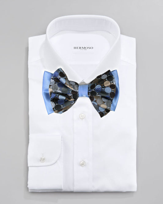 Circles Blue Big Bow Tie and Matching Handkerchief