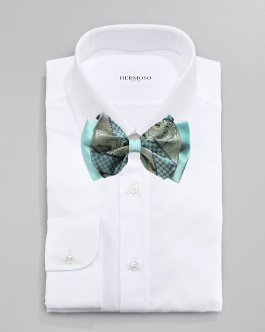 Paisley Aqua Big Bow Tie and Matching Handkerchief