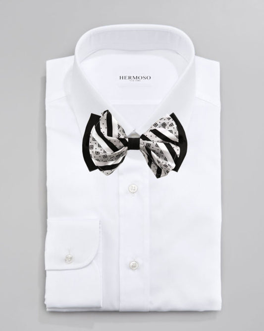 Geometric Black Big Bow Tie and Matching Handkerchief 4147